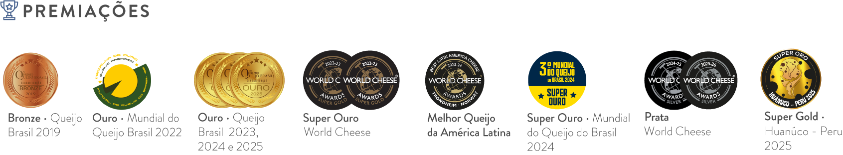- Ouro no World Cheese Awards 2021-2022 - Maturação 6 Meses