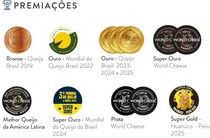 - Ouro no World Cheese Awards 2023-2024 - Maturação 3 Meses